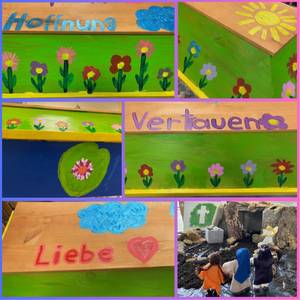 Hier ein paar Eindrücke vom farbenfrohen Sarg unserer Konfis.